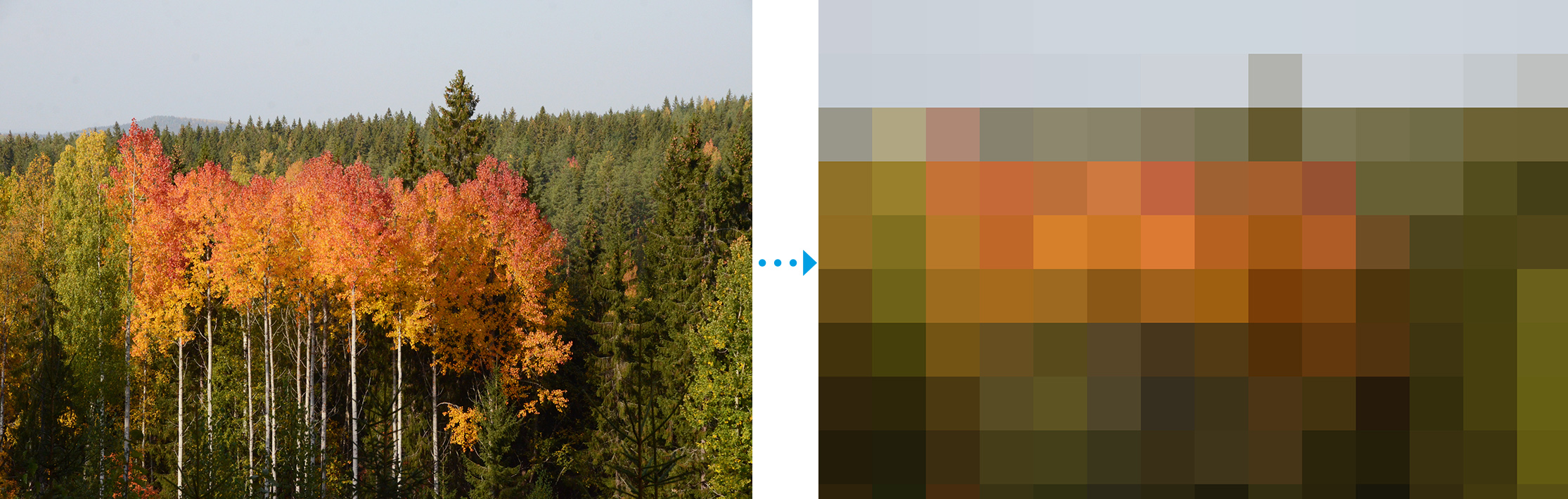 Kuvista on vähennetty informaatiota muuttamalla kuvat värikentiksi. Suomessa tämänkaltaista tekniikkaa on käyttänyt maalauksissaan esimerkiksi kuvataiteilija Sami Lukkarinen.Kuvat Juho Jäppinen.