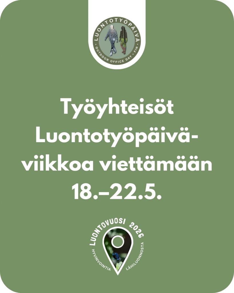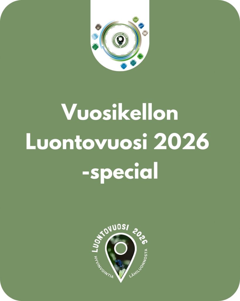 Tervetuloa Luontovuosi 2026 – hyvinvointia lähiluonnosta -sivustolle! Tältä sivustolta löytyy ideoita ja vinkkejä omannäköisesi luontovuoden toteutukseen sekä muun muassa Luontovuoden logot vapaasti käytettäviksi luontopositiivisten tapahtumien ja mielentilan viestinnässä. Sivuston sisältö täydentyy koko Luontovuoden ajan.