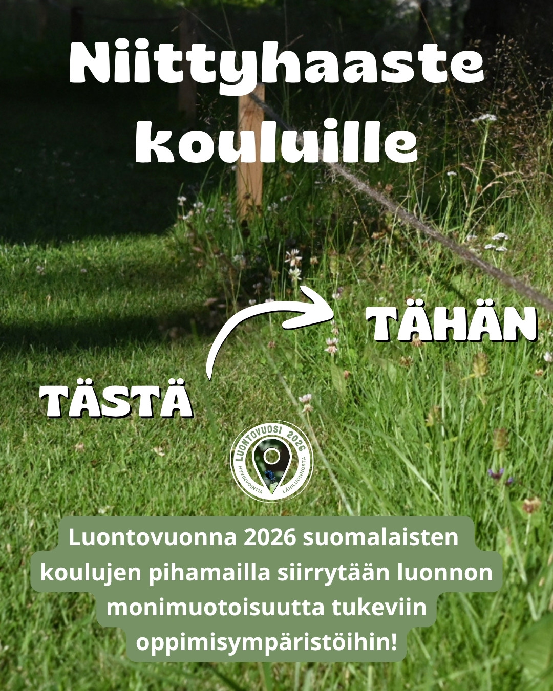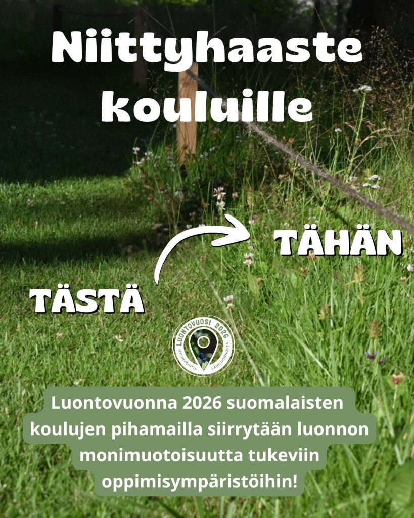 Luontovuoden 2026 kunniaksi julkaistaan Niittyhaaste kouluille. Haasteen tavoitteena on innostaa kouluja muuttamaan oppimisympäristöjään yhä enemmän luonnon monimuotoisuutta tukeviksi ja mahdollistaviksi. Haasteessa jätetään koulun piha-alueita kesän ajaksi hoitamatta. Esimerkiksi osa nurmialueista voidaan jättää leikkaamatta kesän ajaksi. Tämä mahdollistaa kasvillisuuden ja hyönteiskantojen monimuotoistumisen kouluympäristöissä. Alueita voidaan käyttää myös oivalluksia ja oppimista mahdollistavina ympäristöinä, joissa oppilaat voivat todistaa elinympäristöjen muutoksen ja huomata kuinka pienillä teoilla voidaan tehdä isoja muutoksia elinympäristöissä.